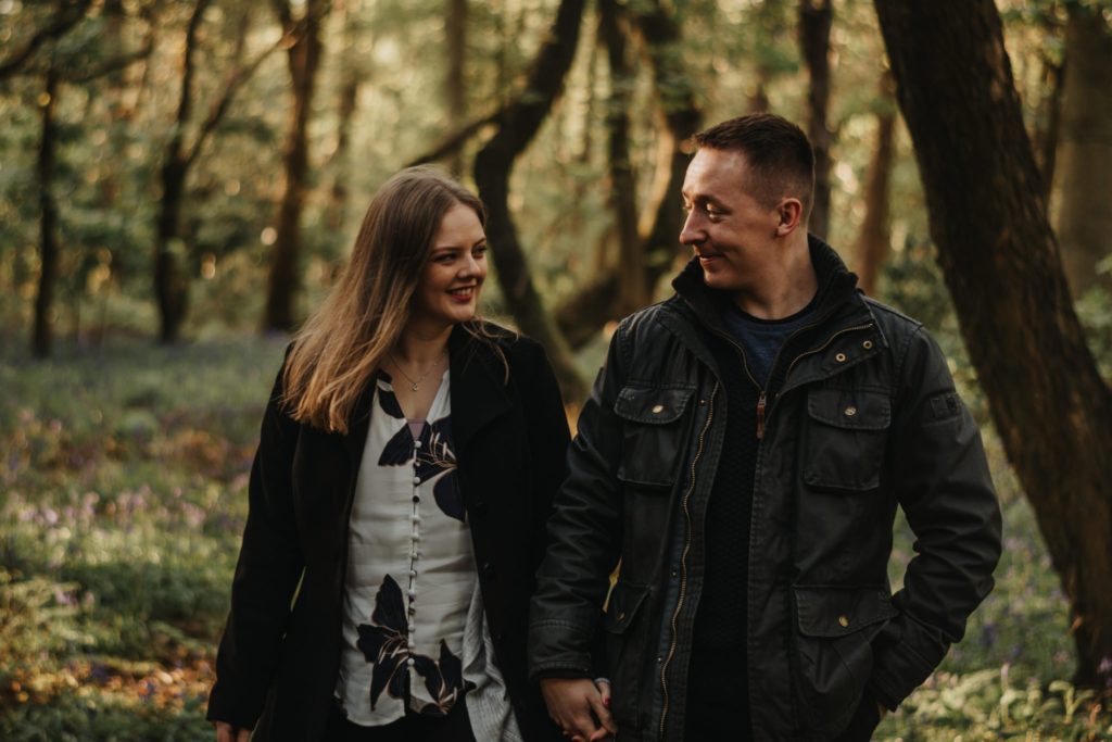 I showed up a little early and walked around the park for a bit to find the best locations. almost froze to death as I’d left my scarf in the car but I survived. I went back to my car to grab my scarf and then took Claire and Simon around all the nice locations I had found. There were loads of bluebells in the forest so I had to include them in the pictures. We headed down to the riverbank to get some sunsety type photos and slowly made our way back up, finding loads of new locations and backdrops along the way. I thought we were going to get lost, cause you know all the trees look the same, but Claire and Simon seemed to know their way around so I kind of let them lead the way back to the car park.